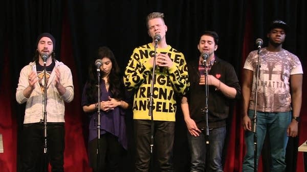 Pentatonix, the wildly popular a capella group, perform their original song "Run to You" at the Crawford Family Forum in Pasadena, during their interview with Classical MPR's Brian Newhouse and Tesfa Wondemagegnehu.